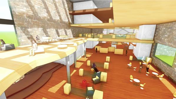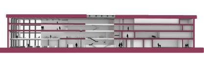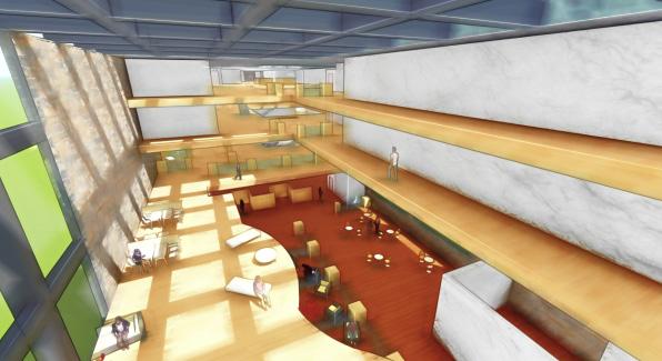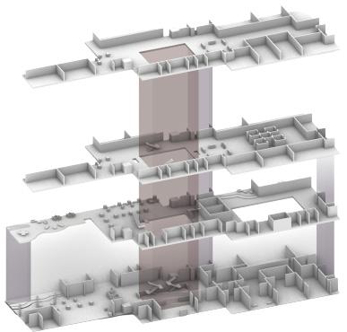 The life and workplace of an artiat requires fluidity and room for creativity. In addition to this, artists create in groups, pairs and singular volumes. In a multi-purpose establishment such as this, the different atriums and viwepoints allow for artists to feel connected throughout the building regardless of the floor they find themselves in.