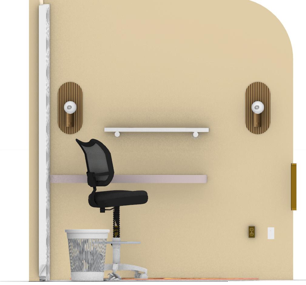 An important feauture of this project ins the acoustic panels. Because this workpod is deisgned for a singular person, ease of wo rkflow and noise reduction were at the forefront of this deisgn. The design choice used foro the acoustic panels aided in fortifying the timeless and peaceful design.