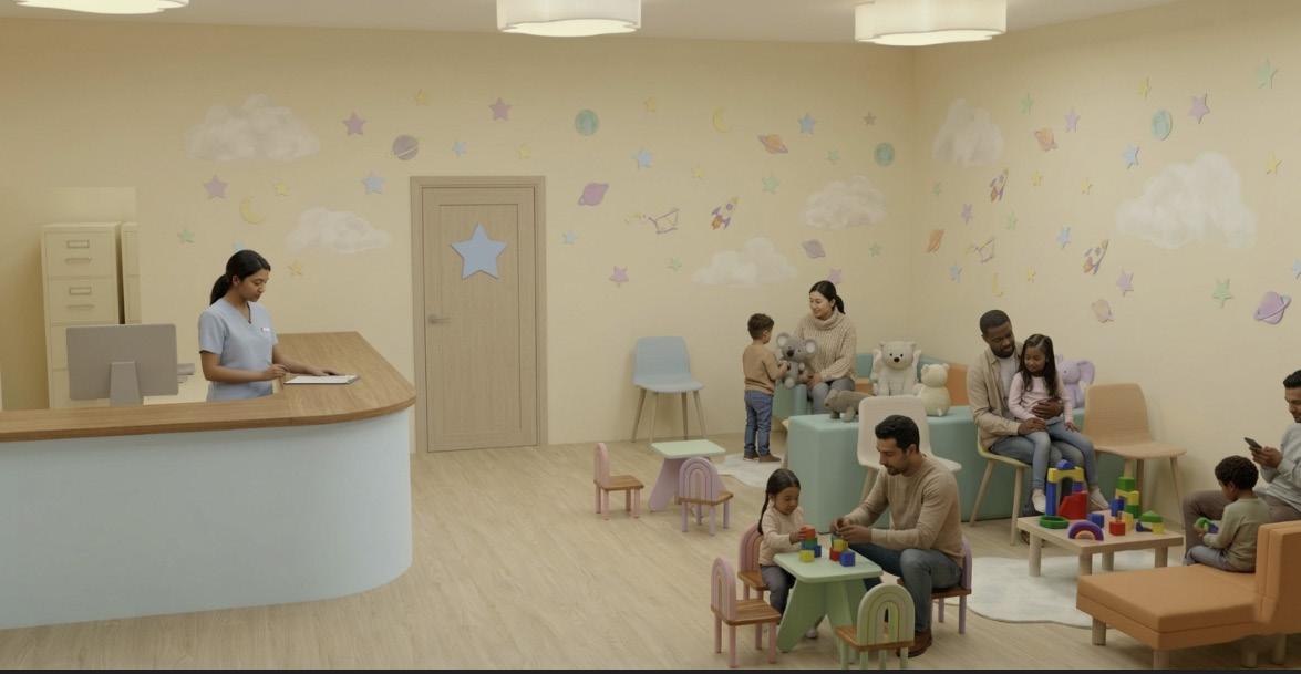 These elements are translated into a cohesive environment that fosters ease, curiosity, and emotional wellbeing for children, families, and staff.This pediatric renovation uses environmental design to create a space that feels reassuring, engaging, and safe.