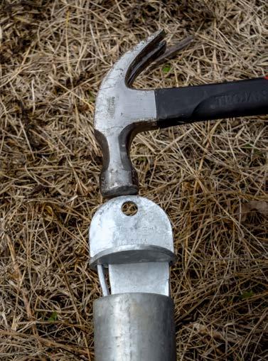 Clip in lugs on 45°angles, and allow half-length pickets to be driven in. This dramatically increases ground anchorage, significantly reducing the chance of the post being pulled up and out. Dig a shallow (150mm) hole before driving the post in. Once it’s all set up, fill the hole back in, leaving nothing exposed.
