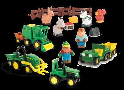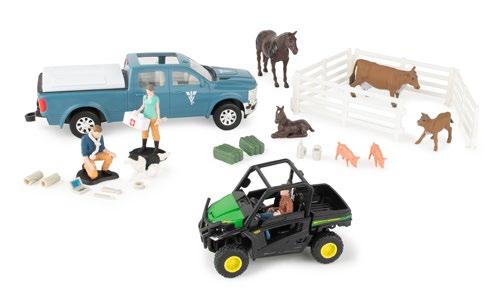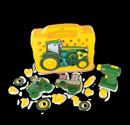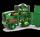 Features a 620 tractor with a steerable narrow front axle and restoration parts featuring a fuel pump, air compressor, jack stands, rolling creeper, and tool case. One time production, while supplies last. Age grade 14+.