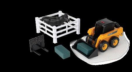 Features die-cast front and rear bodies and die-cast track frames, soft feel tracks, mirrors, handrails, articulation and oscillation features. Clear cab windows reveal a fully detailed interior. Age grade 14+.