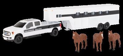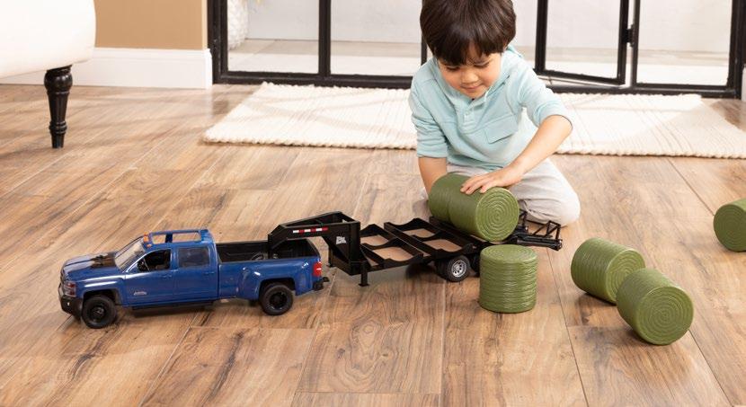 Constructed with die-cast frame and wheels. Features opening hood, opening cab door, articulating frame, authentic style rear drawbar, clear cab windows, and detailed interior. Configured with dual front and rear wheels. The detailed engine, right side body panel, and exhaust replicate the updated 13.6L diesel. Age grade 14+.