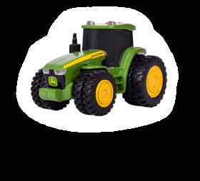 Constructed with die-cast body. Features clear cab windows that reveail detailed cab interior. Configured with FWA front axle and single rear wheels. Three point hitch raises and lowers. Age grade 14+.