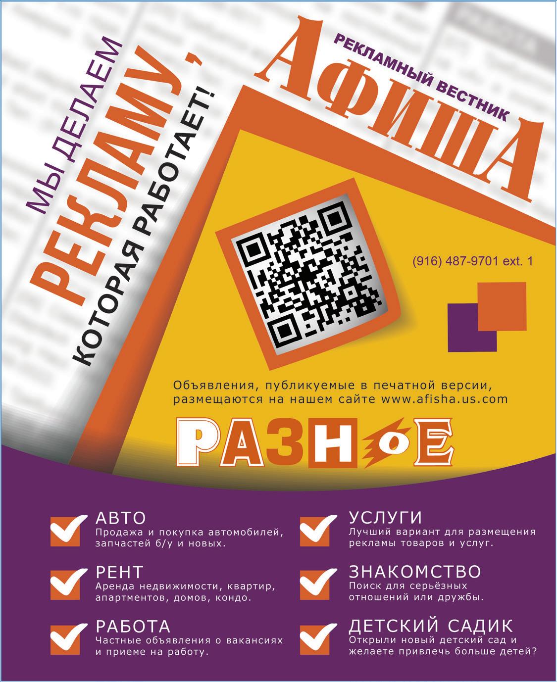Подать объявление можно на сайте www.afisha.us.com.