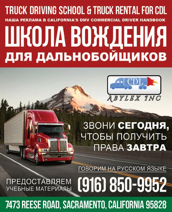[22] Карьера трак драйвера может стать решением ваших финансовых проблем. Приходите в нашу trucking school, вы гарантировано получите CDL в течение 5 недель. Возможнo дальнейшее трудоу стройство. Тел.: (916) 806-4088.