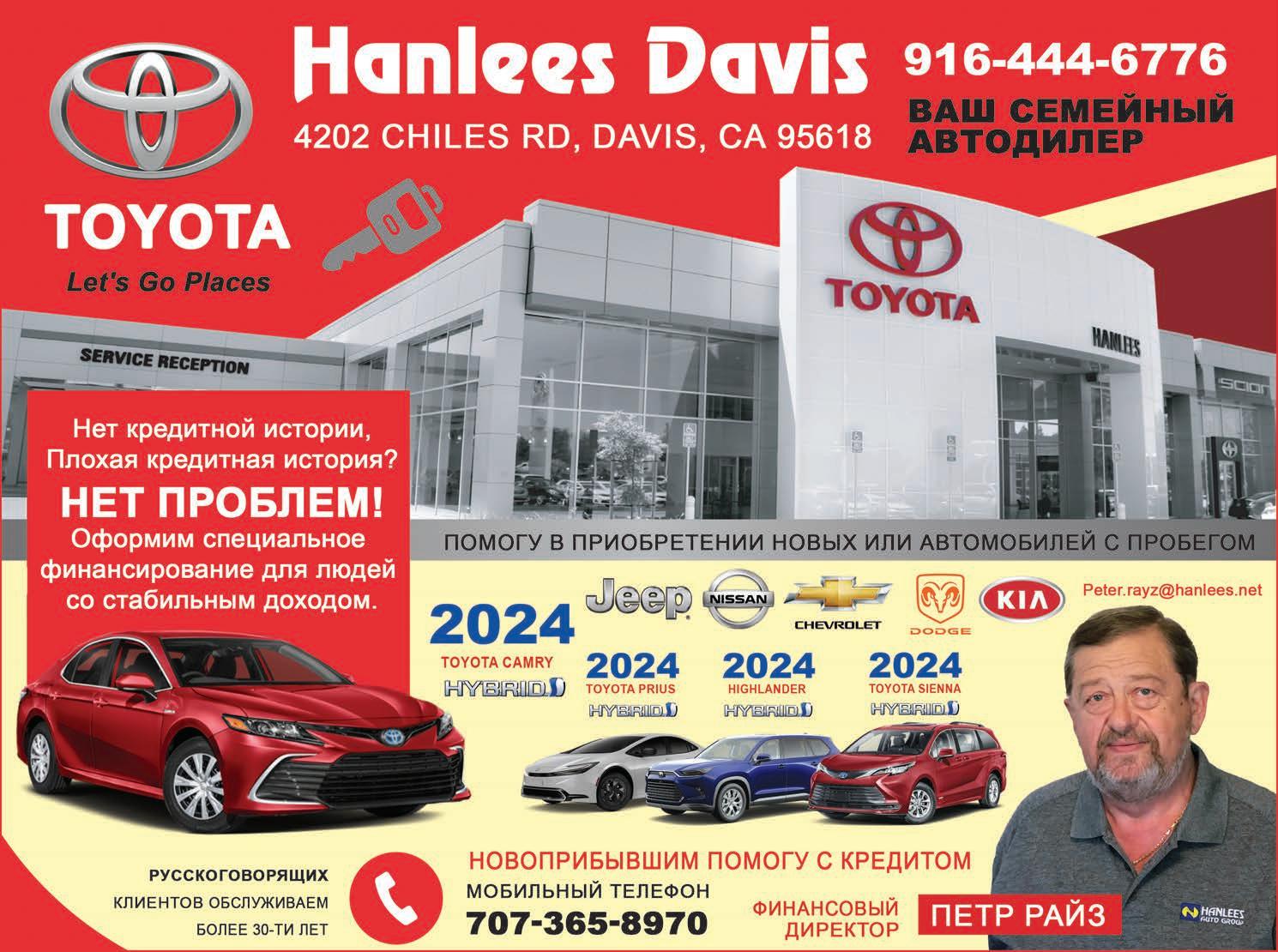 # 9 (2024) • 12 мая 6 ПО ВОПРОСАМ РАЗМЕЩЕНИЯ РЕКЛАМЫ ОБРАЩАЙТЕСЬ ПО ТЕЛЕФОНУ: (916) 487-9701 или (916) 705-0739 Полный ассортимент новых автомобилей 916-549-8709 www.thefuturehonda.com 6151 Auburn Blvd, Citrus Heights, CA 95621 КОНСУЛЬТАНТ ПО ПРОДАЖАМ МАРКО ГЛУБОЧАНСКИЙ Хотите потратить возврат налогов с пользой? Наш огромный выбор поможет подобрать идеальную машину – будь то легковой авто, трак или внедорожник! Новый внедорожник 2024 Honda Pilot TrailSport Электрический кроссовер 2024 Honda Prologue