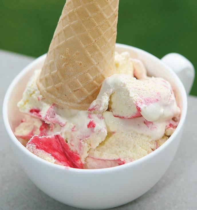 стручок ванили, поставить на огонь и довести до кипения, затем стручок ванили вынуть. Взбить желтки с сахаром (1 ст. ложку сахара оставить). Медленно, все время помешивая, ввести горячие сливки с молоком в желтки. Вернуть кастрюлю на плиту и на медленном огне, продолжая помешивать, довести массу до загустения, затем остудить, перелить в контейнер и поставить в морозилку на 3 часа. Время от времени перемешивать мороженое деревянной ложкой. Малину высыпать в кастрюлю, добавить 1 ст. ложку сахара, 3 ст. ложки воды, довести до кипения, варить на медленном огне, помешивая, около 10 минут, затем протереть через сито, чтобы избавиться от зернышек. Ввести в мороженое малиновый сироп, перемешать таким образом, чтобы получились малиновые разводы, и отправить в морозилку максимум на 2 часа.