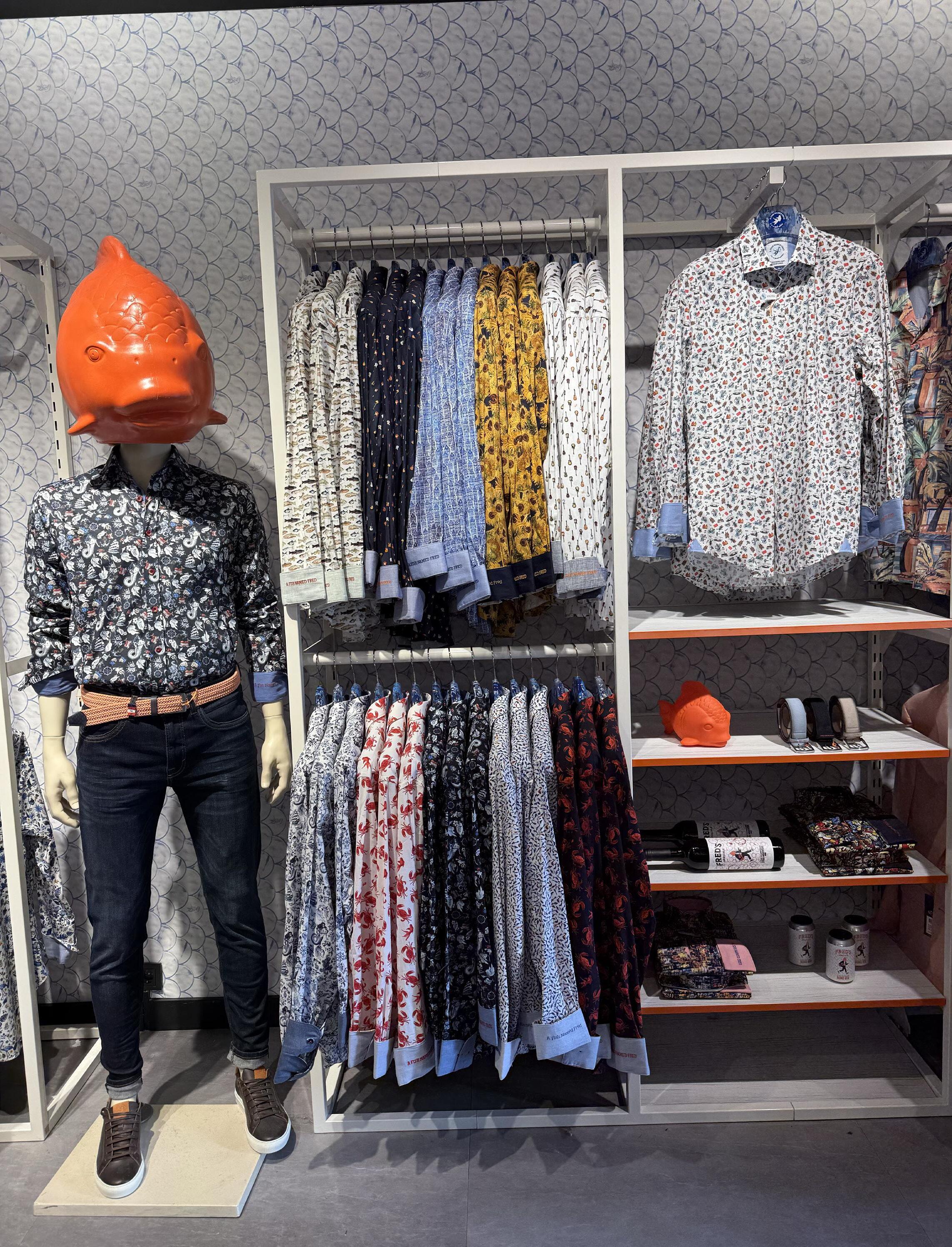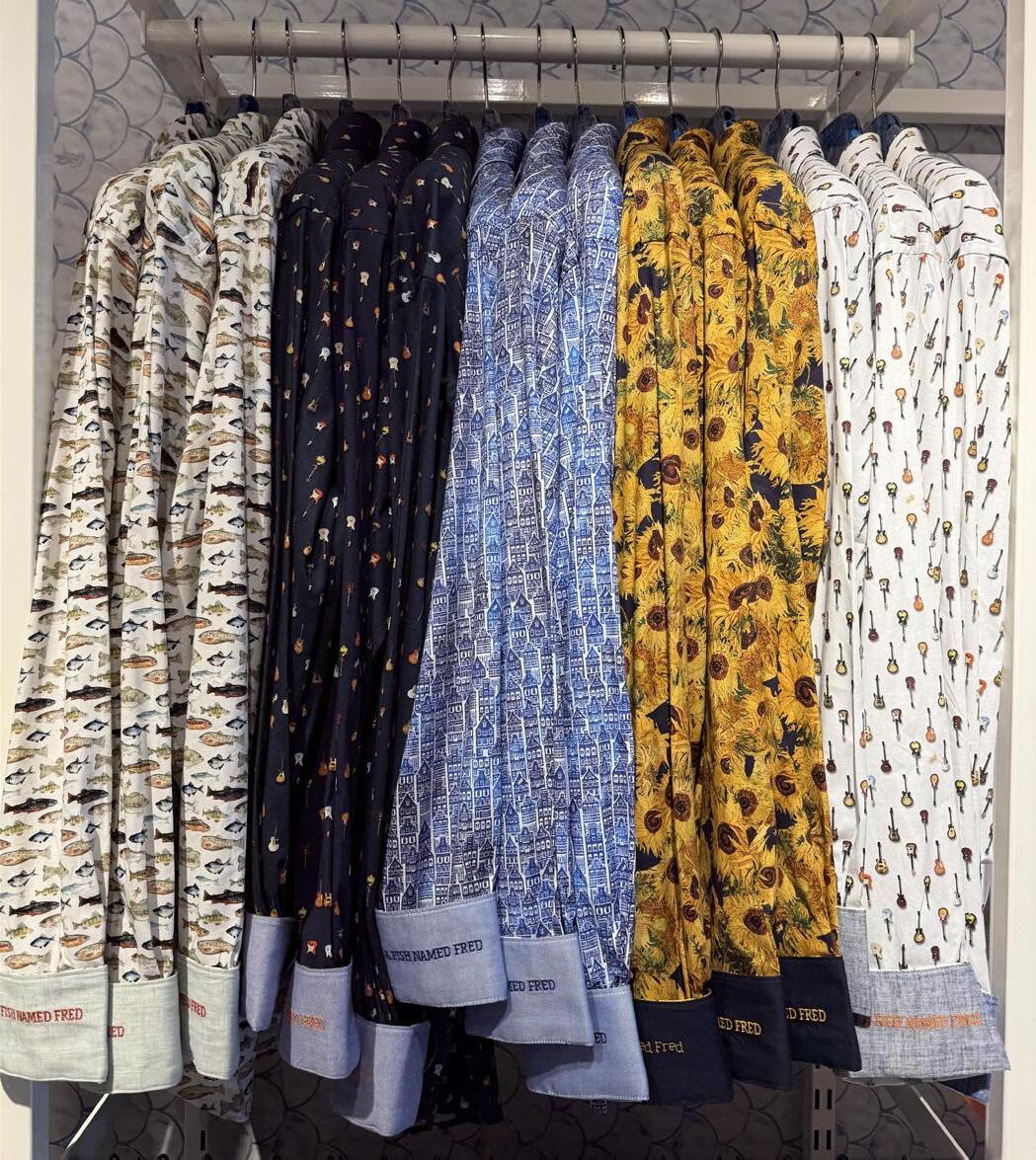 Die Fred’s Classics Wand ist der Ort, an dem Wiedererkennung, Kontinuität und kommerzielle Stärke zusammenkommen. Ikonische Prints stehen hier im Mittelpunkt. Durch die Präsentation desselben Prints in mehreren Farben dicht nebeneinander entsteht ein starkes und klares Bild. Kunden sehen sofort die Auswahl und werden dazu angeregt, ihre Lieblingsvariante zu finden. Schaffen Sie Balance, indem Sie Beige- und Gelbtöne sowie die Rottöne zusammen gruppieren.