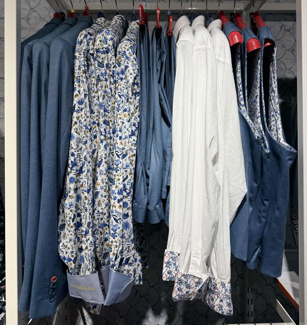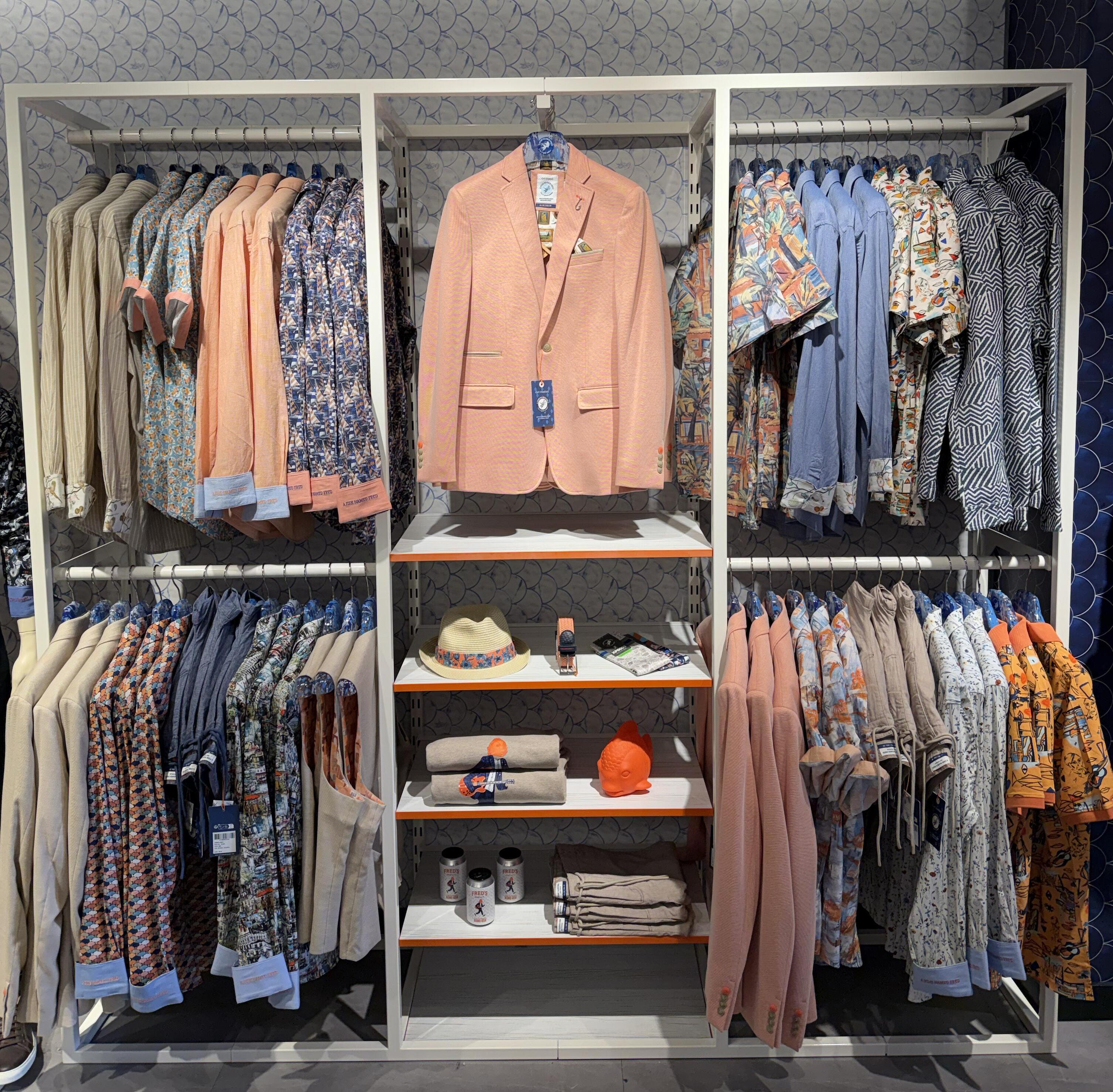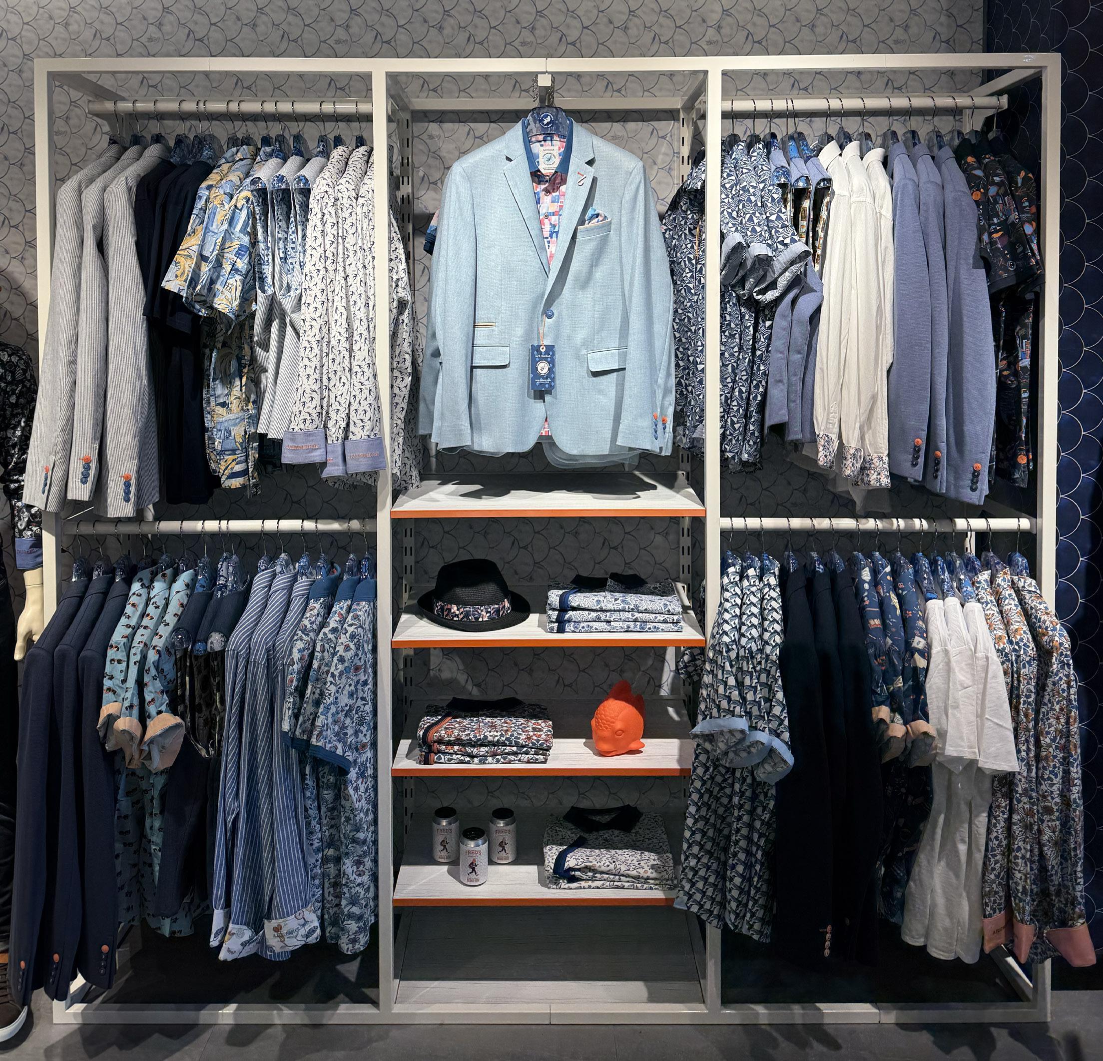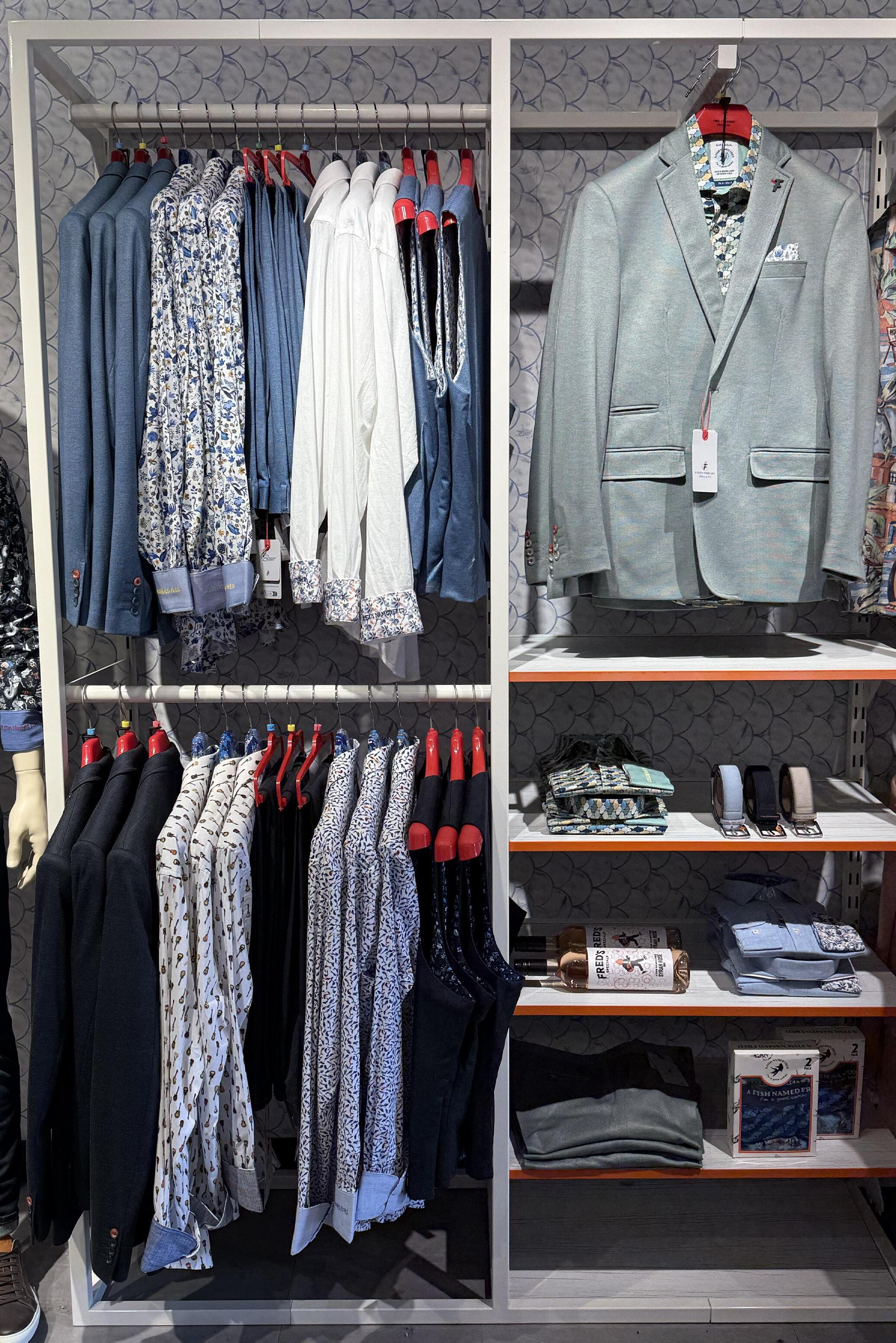 Fred’s Threads bringt einen eleganteren, raffinierteren Look in den Store. In diesem Bereich dreht sich alles um modernes Tailoring mit Charakter. Denken Sie an Anzüge, Blazer und Westen, die zusammen ein stilvolles und ruhiges Gesamtbild schaffen. Durch die Präsentation von Gürteln sowohl frontal sichtbar als auch nach Farben gruppiert, erhöhen Sie die Aufmerksamkeit und die Möglichkeit zum Cross-Selling. Beginnen Sie mit dem hochwertigsten Artikel, dem Blazer. Ergänzen Sie anschließend ein Hemd, eine Hose, ein weiteres Hemd und schließen Sie mit einer Weste ab. So bieten Sie dem Kunden zwei Hemdoptionen innerhalb des Looks.