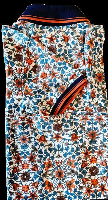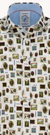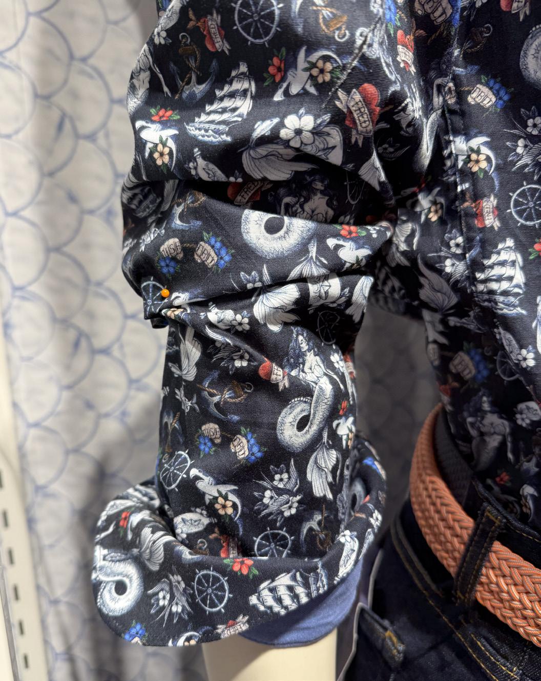 Hier sehen Sie, dass sich der Print in verschiedenen Farbvarianten wiederholt. Wechseln Sie zwischen langärmeligen Hemden, T-Shirts und Westen ab.