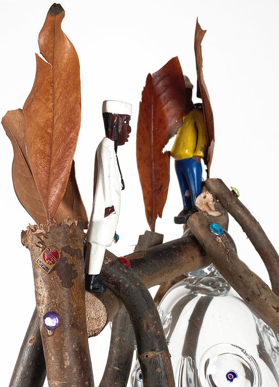 À première vue, on pourrait s’imaginer dans un univers parallèle et joyeux, un arc-en-ciel poétique, dont seuls les enfants auraient la lecture. Mais derrière leurs façades enjouées, les 23 installations, ces « petits riens », comme l’artiste camerounais se plaît à les nommer, dénoncent plus d’un chaos.