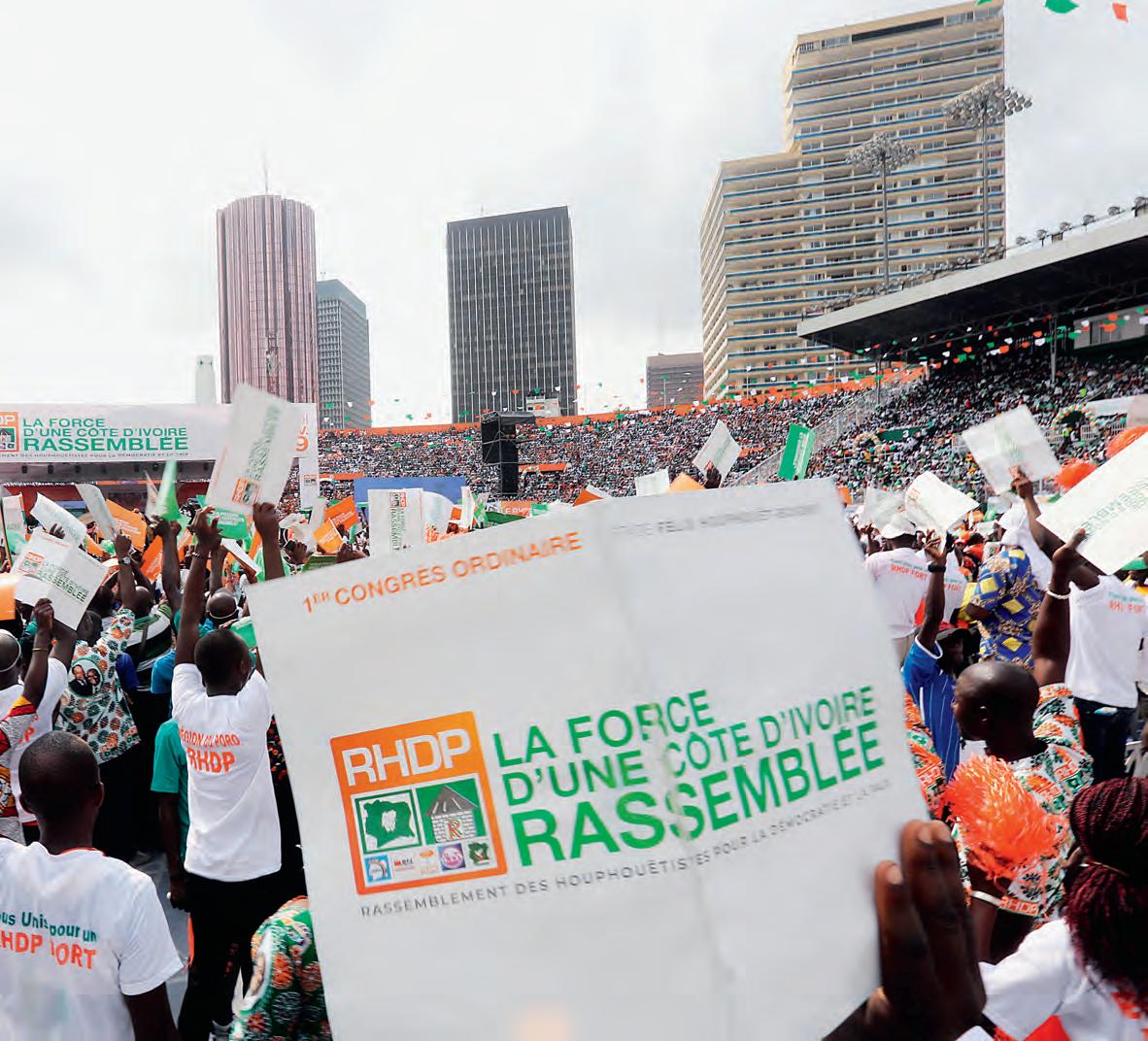 Samedi 26 janvier, milieu de journée, stade Félix-Houphouët-Boigny, une enceinte bizarrement construite au cœur du Plateau, le quartier central, enchâssée dans des rues souvent saturées par les embouteillages. Des dizaines de milliers de militants motivés sont venus pour la clôture du 1er congrès du RHDP, le parti unifié voulu par le président Alassane Dramane Ouattara. Le président de la République est en grande forme, le discours est offensif, mobilisateur. Un grand parti est en train de naître, avec, au moins, la volonté de rompre avec les clivages habituels, les frontières ethnico-culturelles. De bouger les lignes, d’écrire un roman national différent. C’est séduisant. Pour Alassane Ouattara, c’est aussi une manière de boucler un cycle, de marquer une étape historique. De sortir finalement des années Houphouët, de ne garder que les idées-forces du mythe, la paix et l’unité. Et d’incarner le passage vers l’avenir. Évidemment, la politique de tous les jours est là, essentielle. Le RHDP a forcé les uns et les autres à se positionner. Entrer dans le parti unifié, c’était accepter de renoncer aux anciennes identités politiques, un obstacle insurmontable pour certains. La montée vers le congrès aura donné lieu à des moments épiques, aux vertiges du choix, aux durcissements des positions pour rallier. Ou pour éviter l’hémorragie des troupes… Entrer dans le parti unifié, c’était aussi accepter l’autorité naturelle d’Alassane Ouattara, sa prééminence sur le processus qui mènera à l’élection présidentielle de 2020.
