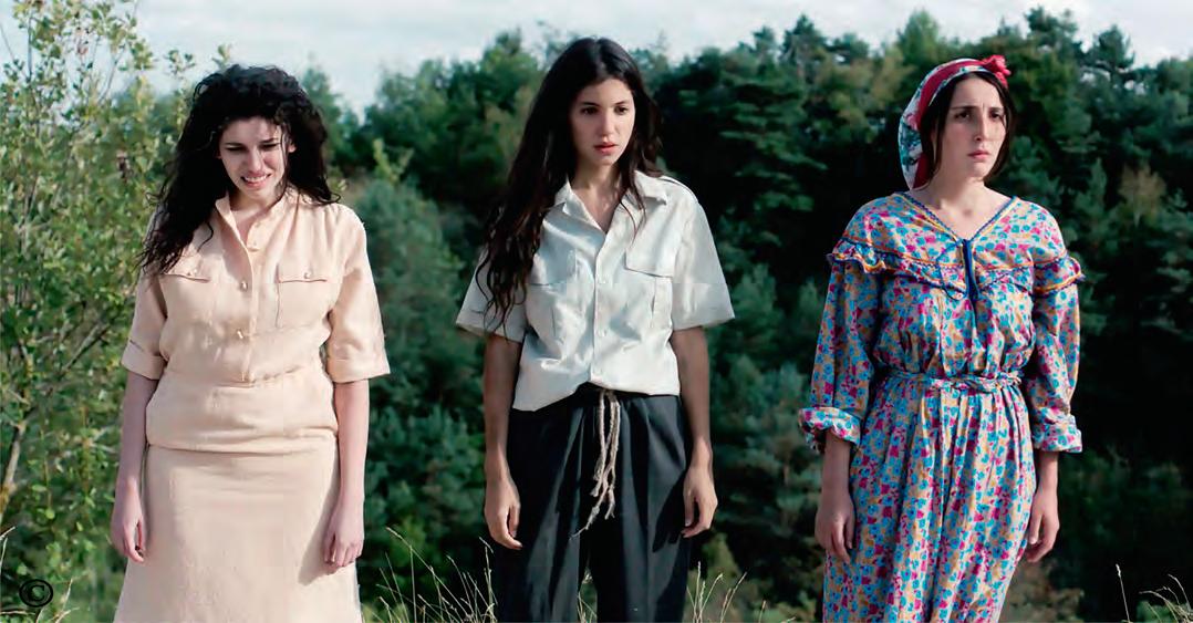 Sawsan Abès, au centre, joue une jeune paysanne berbère qui se fait arrêter en 1956.