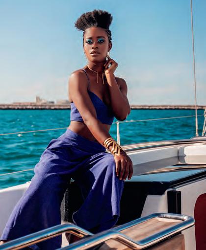 STYLISTE MAROCAINE installée à Dakar depuis presque trois ans, la trentenaire Ghada Lamghari a présenté la dernière collection de sa marque lors de la Fashion Week de la capitale sénégalaise en décembre 2020. Intitulée « The Call of The Ocean », la ligne comprend une dizaine de modèles, déclinés en lin bleu ou blanc, avec des inserts en tulle qui évoquent la transparence de l’eau et ajoutent un effet de mouvement aux coupes nettes et épurées.
