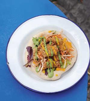 à l’étouffée), accompagnés de fluffy rice au lait du coco ou de houmous de banane plantain. Chez Afro Jojo, le chef, adepte d’une cuisine déstructurée, relève plats et sandwichs avec des marinades spéciales et des sauces originales à base de poivre vert de Penja ou d’épices du Nigeria : le Jojolof Rice Bowl, avec poulet frit maison, ragoût de haricots rouges et sauce maison à base de piment antillais, étonnera vos papilles. Et si chaque resto a des options végé, L’Embuscade propose une cuisine totalement afro-végane : les fêtards parisiens connaissent déjà le club (à Pigalle) et sa cantine inaugurée en 2019, les autres apprécieront les portions généreuses et gourmandes d’une cuisine métissée, déclinée en bowls et buns pour l’occasion. ■ L.N. groundcontrolparis.com