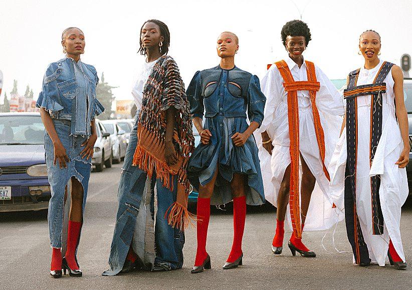 LE LABEL ARTISANAL NKWO DESIGN a presque 20 ans. Lancé en 2007 au Royaume-Uni, puis relancé en 2012, il commence à se faire connaître quelques années plus tard Sa fondatrice, la styliste nigériane Nkwo Onwuka, est retournée au Nigeria en 2015, où elle a fait le pari de la mode durable, en devenant l’une des pionnières du secteur Elle expérimente avec les chutes de tissus, récupère vêtements et accessoires de seconde main, et les transforme en ressources avec l’aide de plusieurs artisans traditionnels triés sur le volet et des femmes vulnérables qu’elle forme au métier. Elle invente ainsi un nouveau tissu africain éthique, tissant à la main un mélange de chutes de denim et d’autres textiles, qu’elle appelle Dakala Cloth. Suivront le Dakala Strings, une technique qui transforme les chutes de tissus en fils et ficelles qui sont ensuite tressés ensemble, et le Dakala Web, une tessiture à main libre en toile d’araignée qu’elle intègre dans certaines créations. Ses pièces sont sélectionnées par le Victoria & Albert Museum, qui les inclut dans l’exposition
