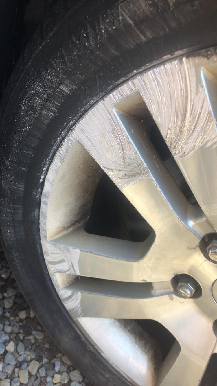 your wheels along with your clear coat. After a few applications, air and water will start getting under the edges of the clearcoat and corroding the metal, creating a white spiderwebbed pattern in the finish that you can’t wash or polish away.