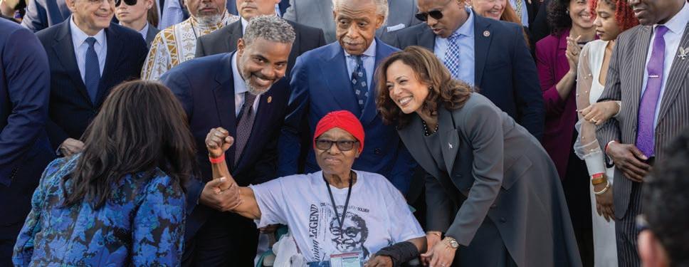 victories, the lingering e ects of Jim Crow laws and ongoing voter suppression serve as reminders that this hard-won right must be actively protected. Many young Black voters draw inspiration from the progress made in representation, particularly with the election of Kamala Harris as the rst Black female Vice President. “ e progress made has been so inspiring to see,” said Mia Hall, 22. “To know and understand that Black Lewis on pg. 5