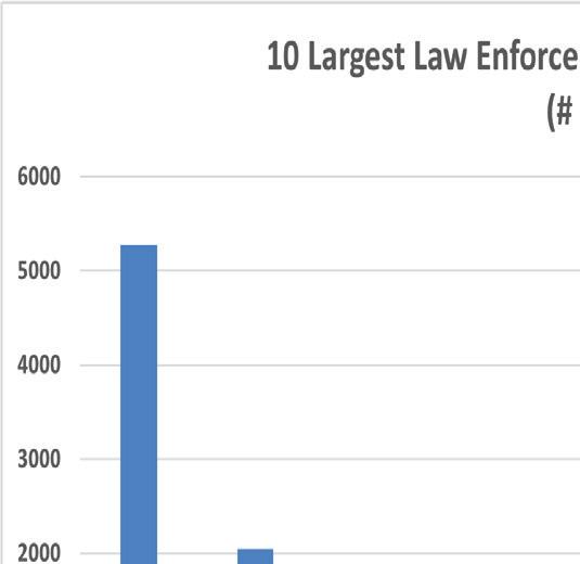 ese range from the largest, the Houston Police Department with 6,337 employees (of which 5,246 are o cers), to the smallest, the Shore Acres Police Department with 6 o cers. e second largest is the Harris County Sheri ’s O ce (HCSO) with 4,570 employees. However, HCSO has a substantially lower ratio of o cers at 2,049 (44%). I suspect this has to do with the personnel necessary to run the County’s jail.