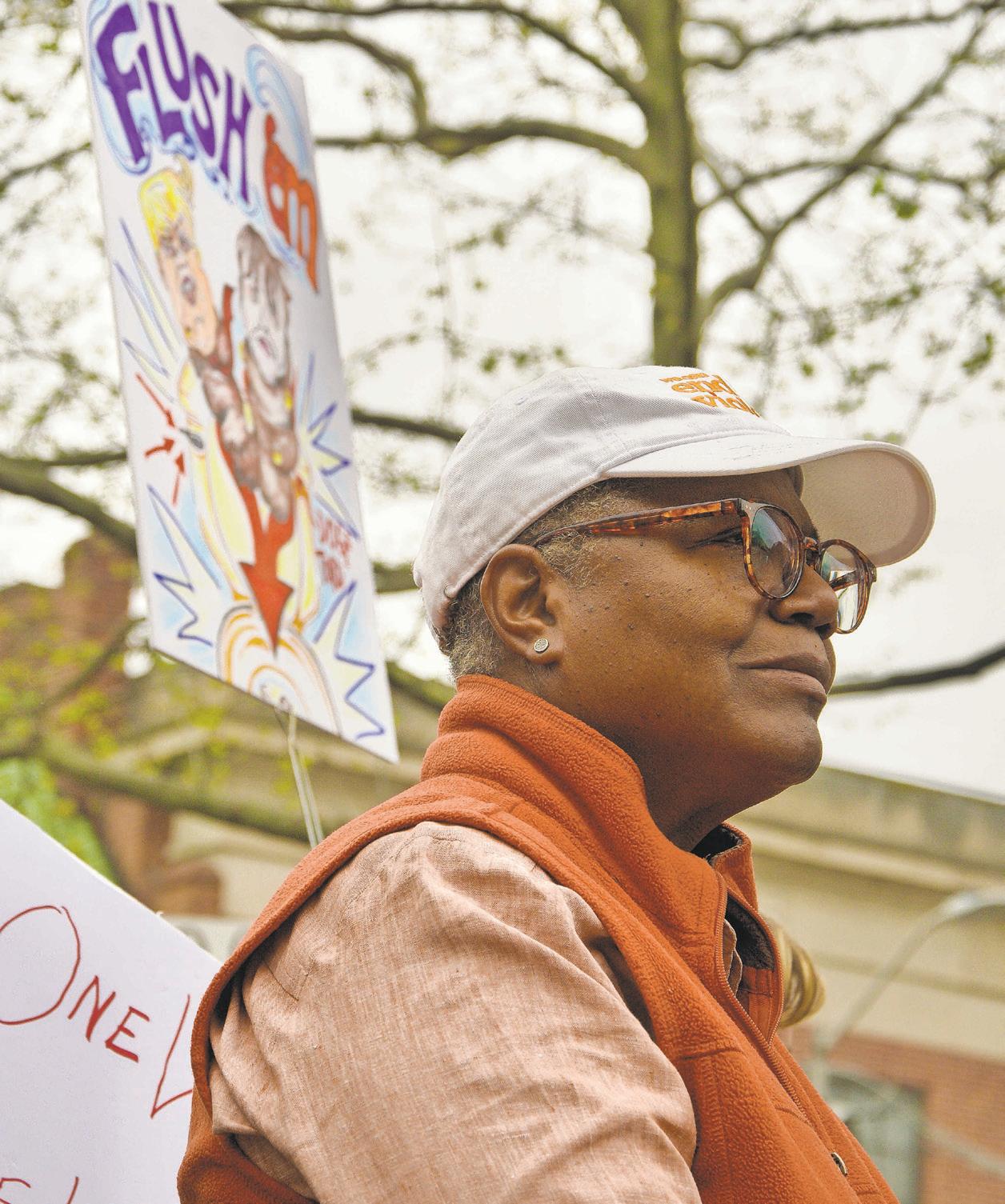 Tony Sarmiento, a retired worker from Silver Spring, Md., who has attended 21 demonstrations in support of federal employees since the new administration took office, stood beside Greene, snapping photos and helping her with her belongings.