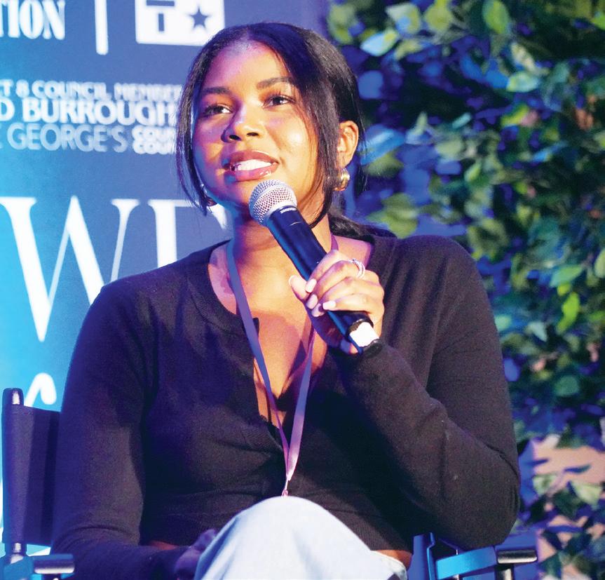 Mariah Moore (left), co-founder of the House of Tulips, and Raquel Willis, author and media strategist, speak on a panel titled, “Unapologetically Me: Breaking Binary, Living Out Loud.”