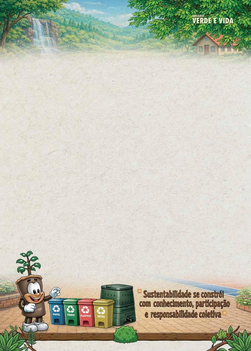 de lixo, bem como buscando o aumento da proporção de materiais para reciclagem/reutilização/reaproveitamento. Ainda temos muitos desafios e o principal é envolver de forma efetiva a população na separação e destino correto. O que almejamos é integrar a sociedade, empresas e gestão pública, a fim de aumentar o porcentual de reciclagem em nosso município. Para construir esse vínculo participativo, o Projeto Educação em Saúde Ambiental é instrumento imprescindível para implantar e garantir que novos comportamentos necessários sejam agregados a geração, gestão e manejo dos resíduos sólidos e orgânicos.