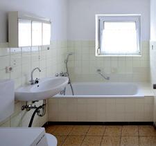 Vor dem Umbau –Alle alten sanitären Apparate, Wandund Bodenplatten werden erneuert.