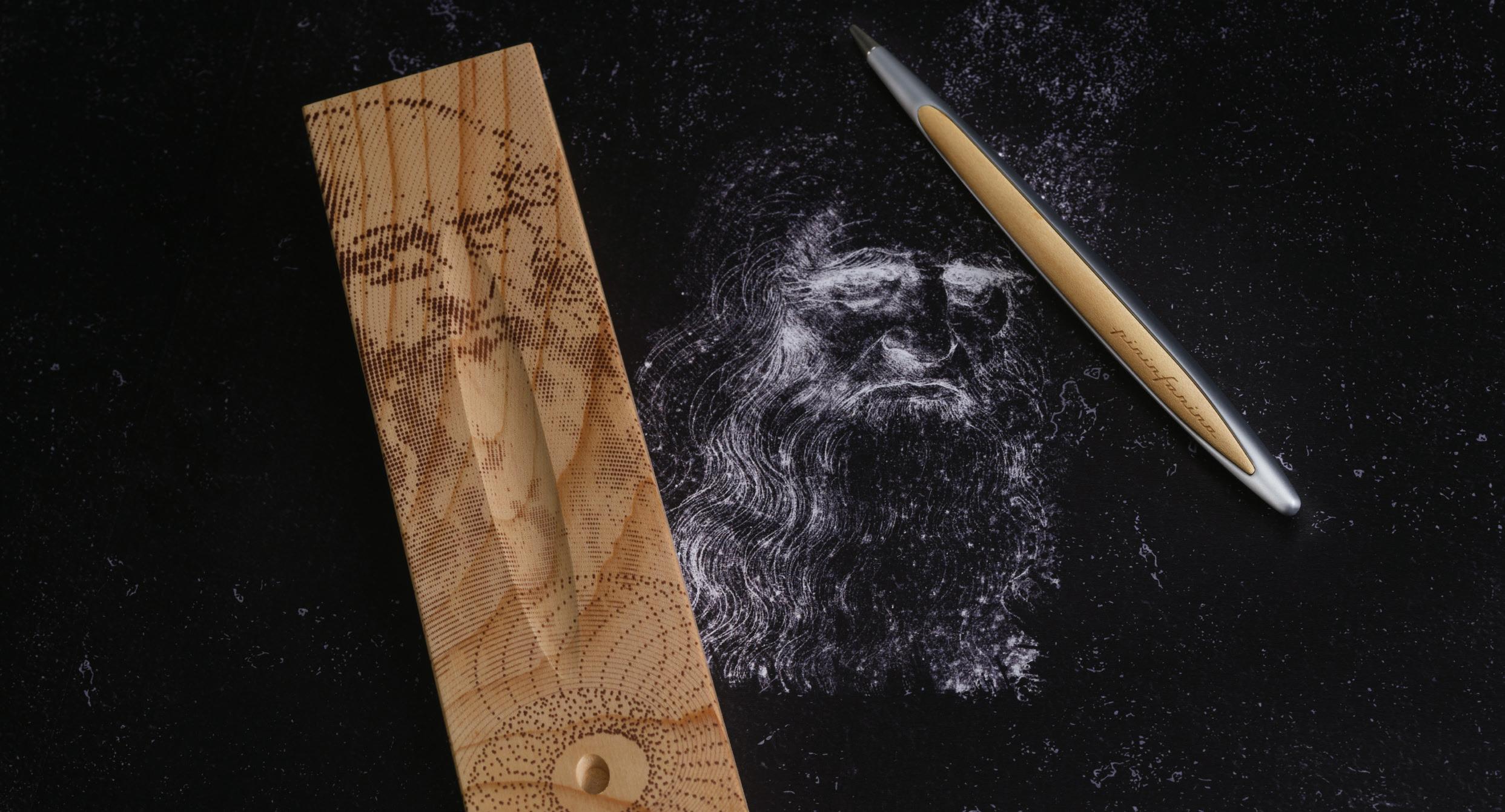 Leonardo Da Vinci, so naša pisala izdelana s konico iz materiala ETHERGRAF®: inovativna kovinska zlitina, razvita in patentirana pri podjetju NAPKIN®, ki ob stiku s papirjem oksidira in tako pusti sled, ki je tako lahna in romantična kot grafit, a hkrati tako neizbrisljiva in večna kot črnilo.