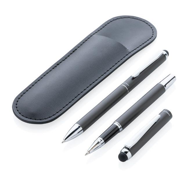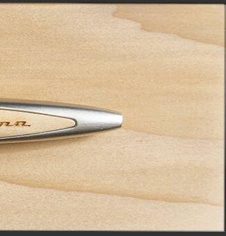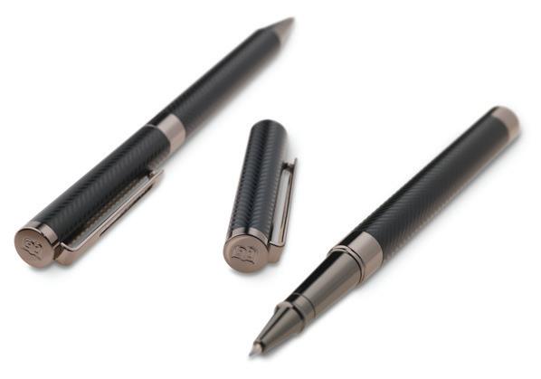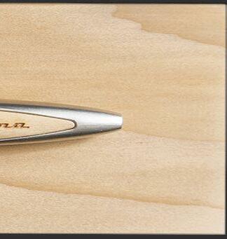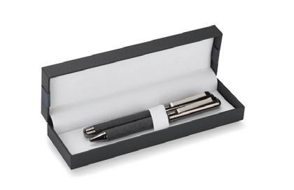 Visoko kakovostni kemični svinčnik ali nalivno pero Faber-Castell. Ohišje je narejeno iz dragocene smole, lakirano s fino Guilloche gravuro.