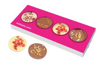 Na voljo različni okusi (oblite pomaranče s temno čokolado, oblite borovnice z belo čokolado, oblite fige z mlečno čokolado, obliti lešniki s stevia čokolado). 40 g. Možnost personalizirane nalepke. 2,60 EUR30/505426,00 EUR 30/5055 3,90 EUR 30/2001 Praline s slano karamelo 30/5058 Čokolada s