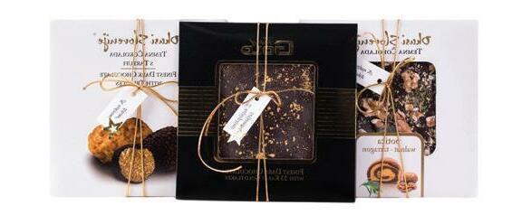 Nabor 6-ih čokolad s poreklom, ki vas ne bo pustil ravnodušnih. Razvajali ste boste z neverjetnimi čokoladnimi okusi iz kar 6-ih vrhunskih pridelovalk kakava in izbrali svojega najljubšega, saj prav vsak očara s svojo značilno aromo in vas s priloženim opisom vsaj za trenutek popelje v kraje od koder izbira. Vsaka ploščica je unikatna in ima različno vsebnost kakava; od 31%-80%. V ceno je vključen dekorativni trak in obešanka s sporočilom. 11,30 EUR 30/4003 30/504718,20 EUR Rum truffle Prefinjeni trufli polnjeni s kremo iz bele čokolade, karamele in ruma ter praznično posuti s kakavovim in zlatim prahom. NOVOwww.agaricpromogifts.si 4