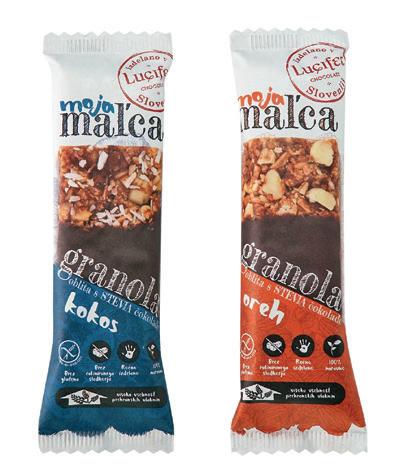 Moja mal’ca Granola Kokos ali Oreh Ploščica iz hrustljavega muslija in kokosa ali z dodatkom orehov, oblita s stevia čokolado. 100% naravna in BREZ vseh odvečnih dodatkov – sladkorja, glutena, konzervansov ali arom. 45 g. 30/50441,60 EUR