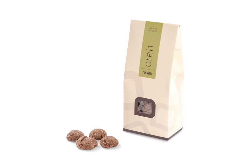 Odlični piškoti (orehovi, čokoladni ali lešnikovi) iz hrustljavega testa. Združitev okusa naših babic in sedanjosti. 150 g. Čokolada ali Oreh 4,50 EUR Lešnik 5,15 EUR 30/5041b