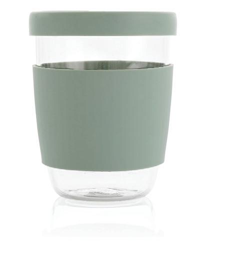 Ukiyo borosilikatno steklo s silikonskim pokrovom in tulcem Kozarec z borosilikatnim steklom ima odličen oprijem, saj ima silikonsko obrobo in pokrov. Majhna odprtina v pokrovu omogoča uhajanje pare in tako preprečuje nastanek pritiska. Brez BPA. Kapaciteta 360 ml. Cena velja pri naročilu 20 kos. 11,00 EUR