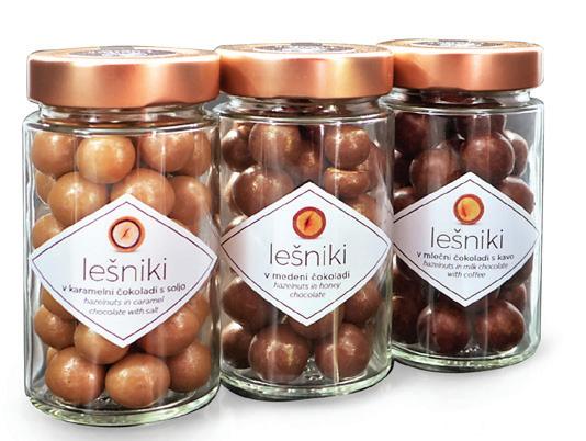 Obliti lešniki, 125 g. Različni oblivi: med, karamela s soljo, kava.