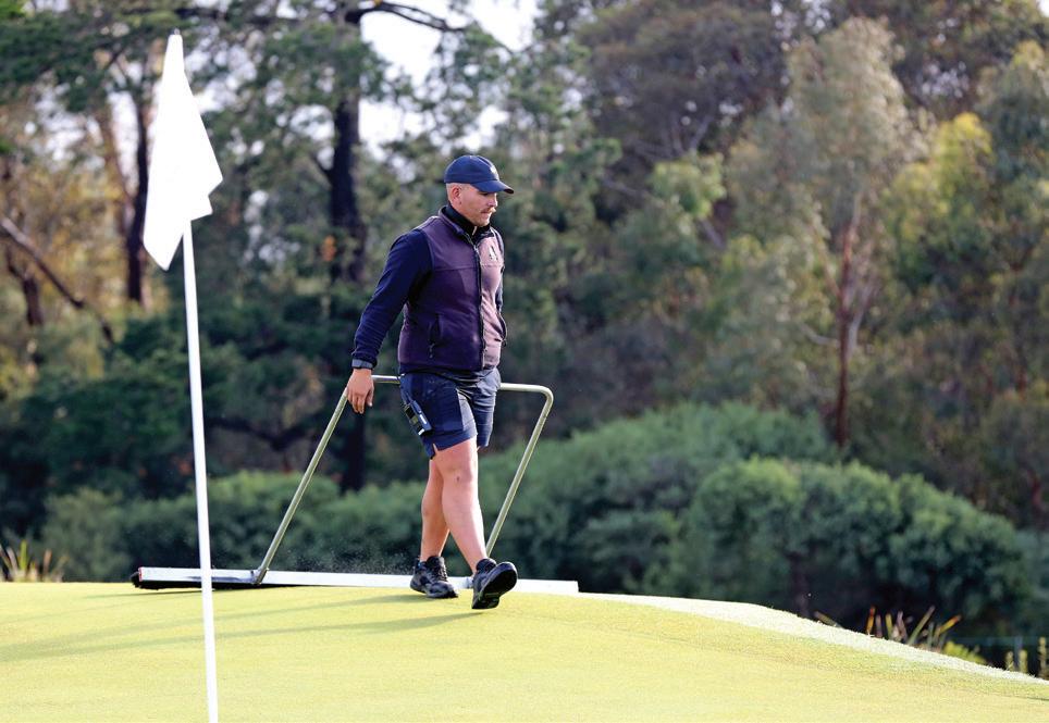 Director of Courses Richard Forsyth, stimping greens at last December’s Australian Open, will finish up at Royal Melbourne GC in the first half of 2026