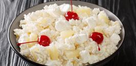 2. Dissolve: 3½ tablespoon lemon gelatin in 1 cup boiling water. Pour over rice and chill.