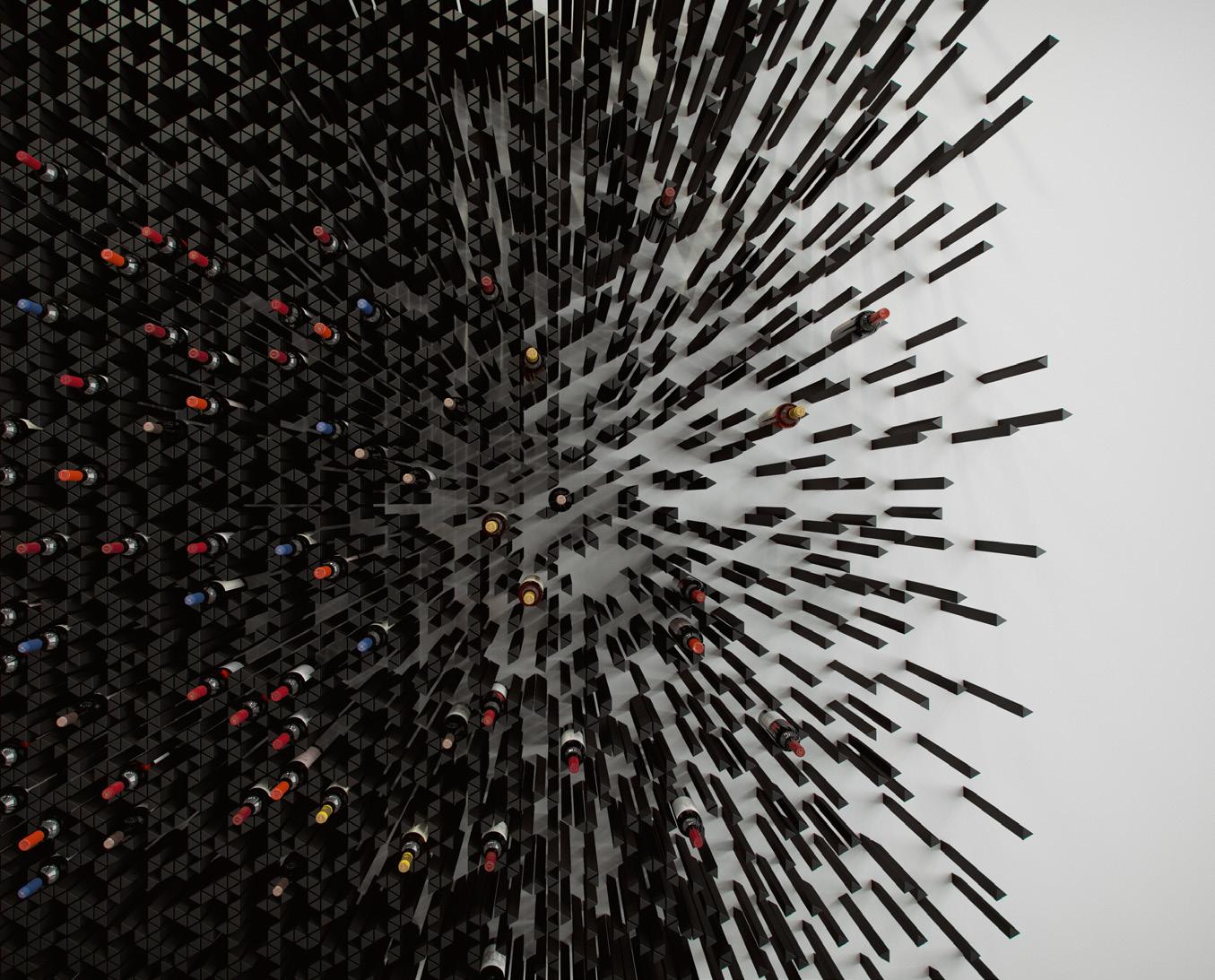 Lauréat du Prix de l’année en Art & photographie, Fade Out s’impose comme une installation monumentale : 7,01 mètres de large sur 3,65 mètres de haut, capable d’accueillir 700 bouteilles tout en paraissant presque immatériel, comme en suspension. La trame répétitive du cellier se défait peu à peu, soustrayant ses éléments jusqu’à se dissoudre en un rythme de pleins et de vides, d’une subtile musicalité. Les bouteilles y trouvent place comme les notes d’une partition qui s’efface. Les finitions marient la sobriété du noir mat à l’éclat du blanc laqué, avec une déclinaison en érable argenté pour d’autres univers esthétiques. Chaque tige s’insère dans l’acrylique blanc et disparaît à l’arrière de la structure, créant une élégance invisible, aux tolérances millimétriques. Même l’air circule en silence, régulé discrètement depuis le plafond. Dans cet équilibre entre présence et absence, l’utilitaire se mue en art et le cellier devient une scène où le vin se révèle à la fois muse et chef-d’œuvre, résolument contemporaine.