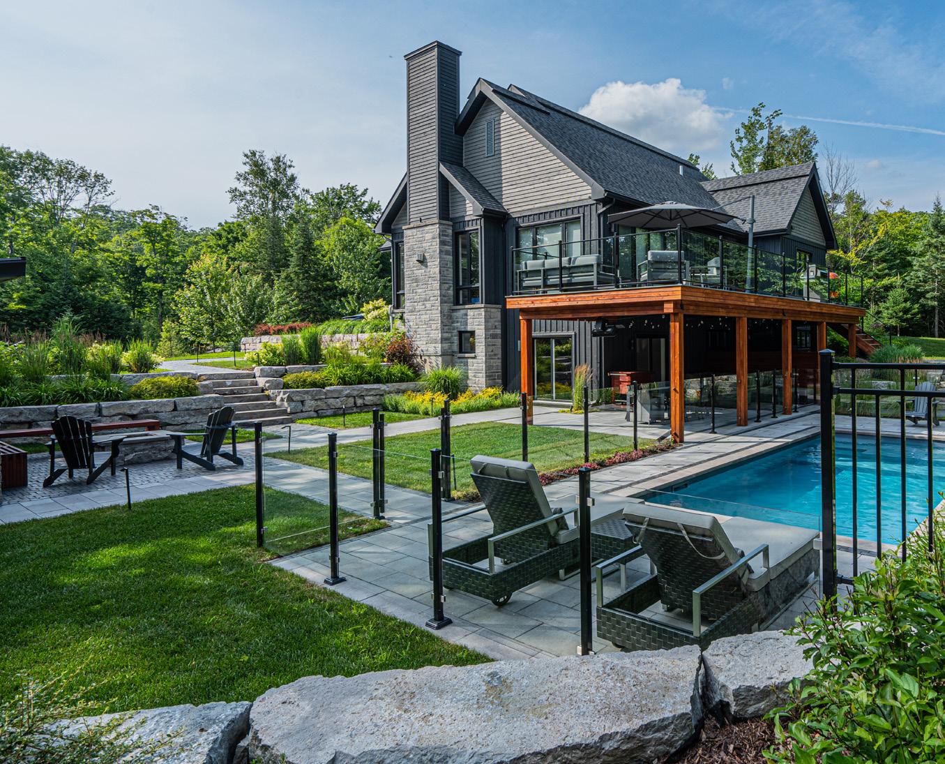 A showpiece of prestige landscaping, this Laurentians retreat is a masterful study in craft, timeless elegance, and precision—an outdoor sanctuary where every view feels intentionally curated and profoundly serene.