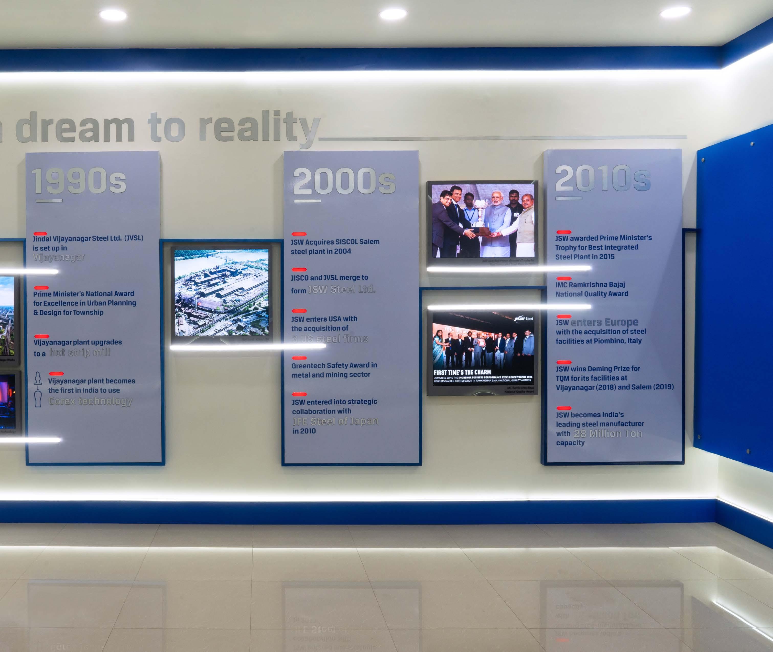 The legacy wall will familiarize customers with the manifold aspects of JSW’s rise on a global stage over the past three decades. It will give customers a holistic view of JSW Steel’s progress as it has emerged as a force to reckon with in the steel industry, inspiring trust and confidence.