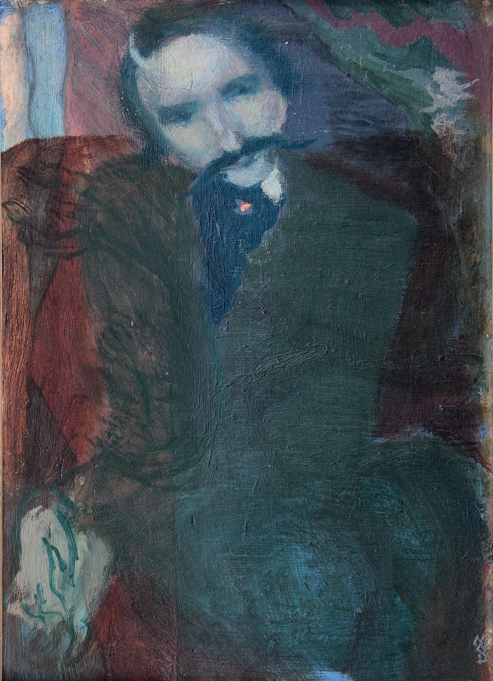 This extraordinary Portrait of André Gide similarly underscores Denis’ links with the literary world. This painting carries out Gauguin’s Synthetist principle of creating formal harmony through the play of tones. Here, the shadows, the costume, the moustache, and the beard of the writer are treated with shades of cool blue that contrast and complement the warm tones of his environment. During his studies at the Lycée Condorcet, Denis met Madame Finaly through Gabriel Trarieux,