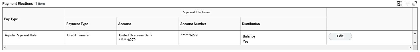 Remark : Please choose the bank account based on the country you work in order to use in payroll process by clicking “Edit” button on payment section under your account.