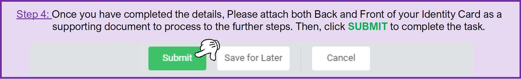 Also, please attach NRIC or FIN card for both front side and back side for data verification.