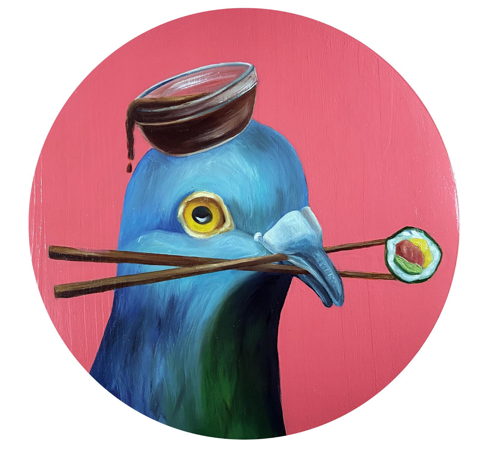 Sushi on the Side Pigeon No.11 Oil on wood panel