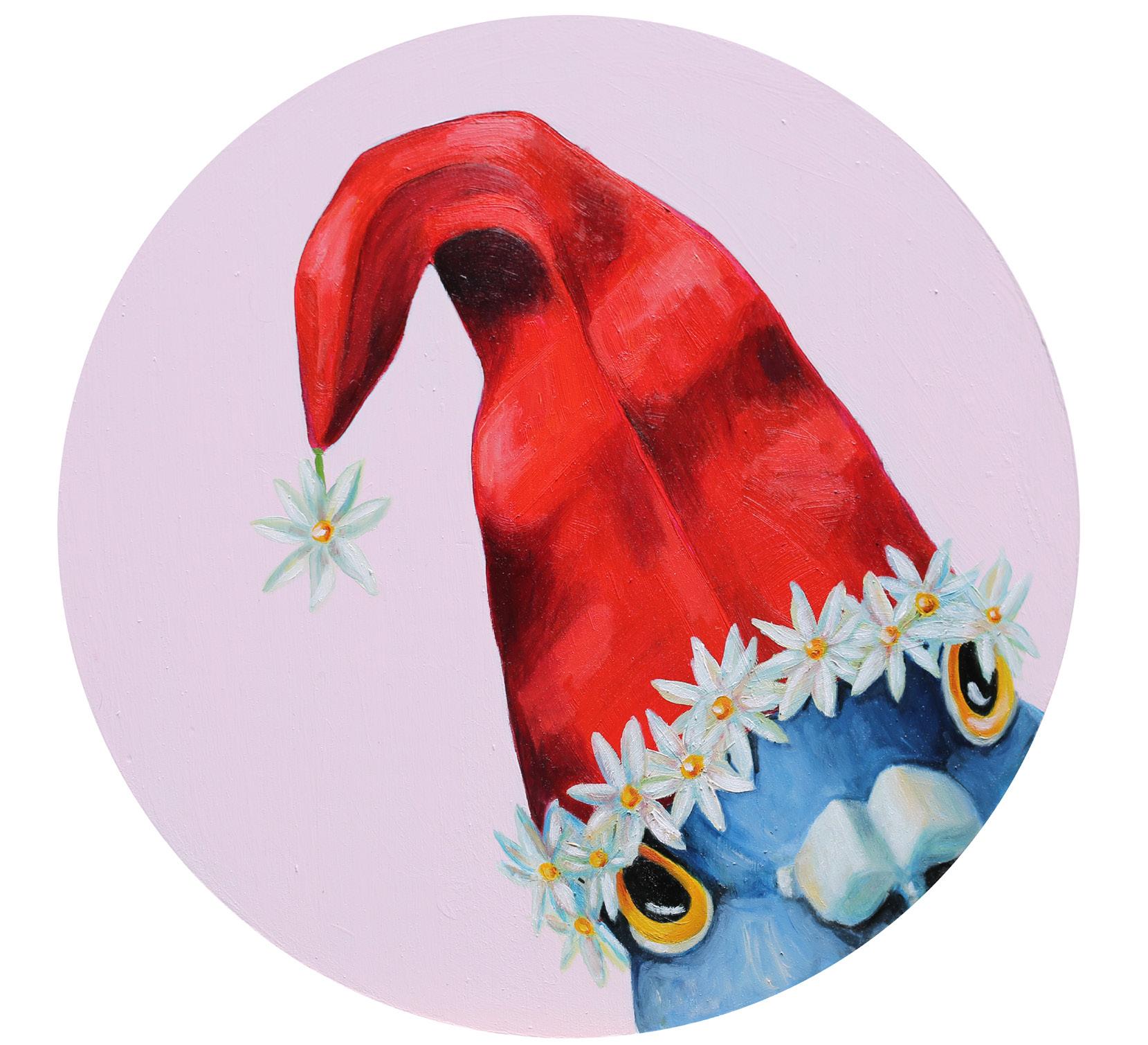Fergus the Berry Gnome Oil on wood panel