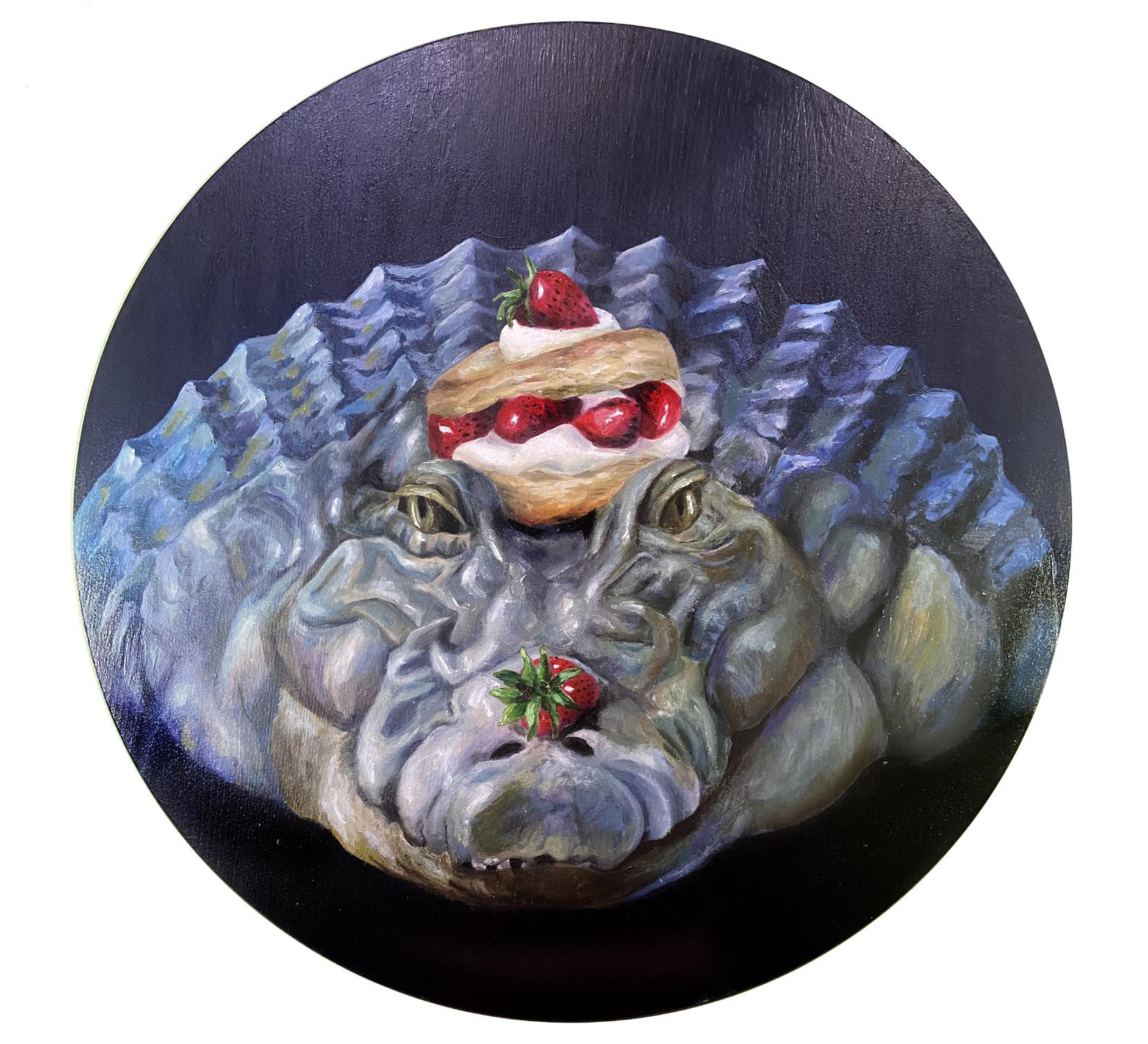 Gator and His Shortcake Oil on wood panel
