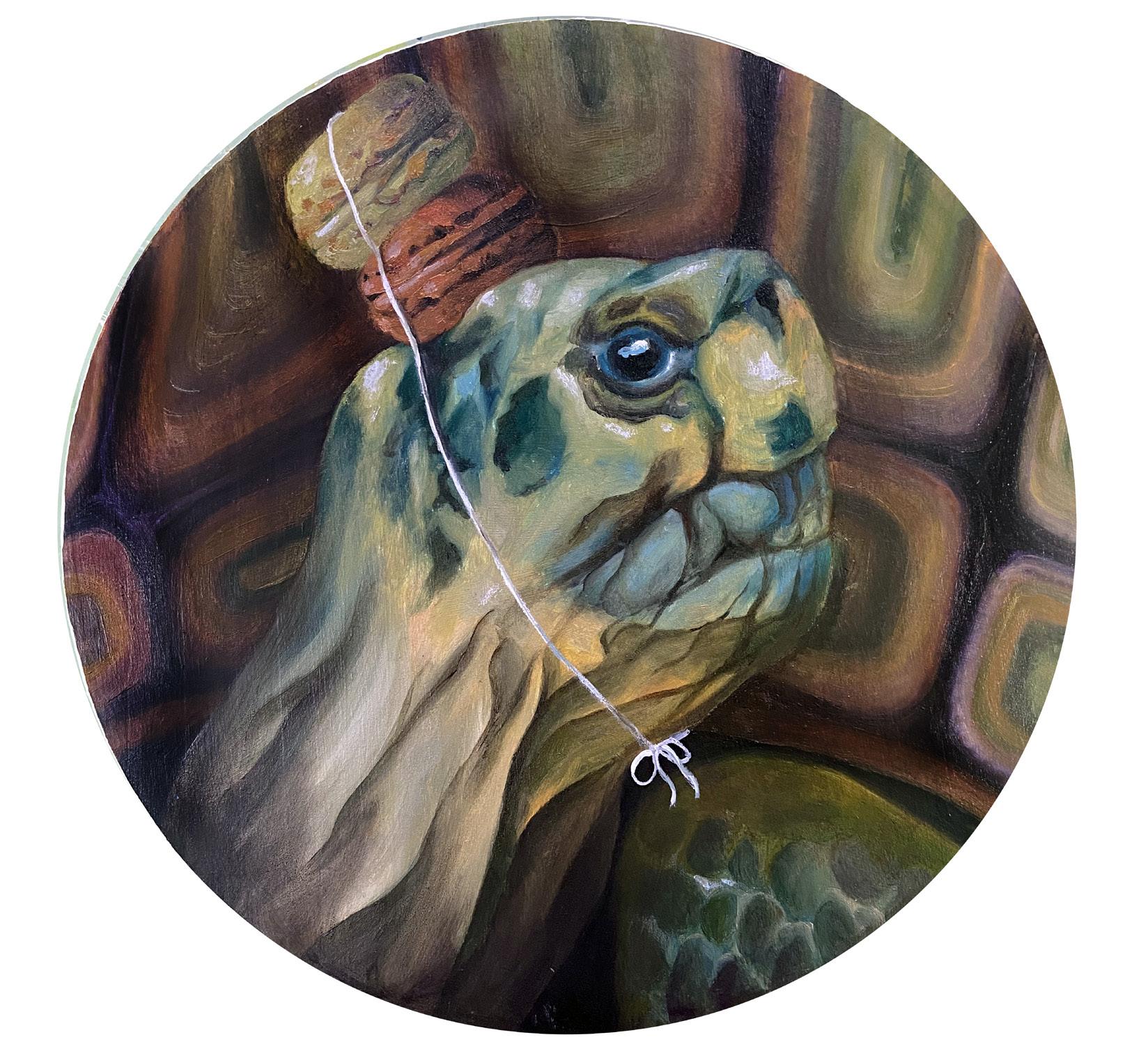 Turtle With Macaroon Crown No.1, 2024 Oil on wood panel