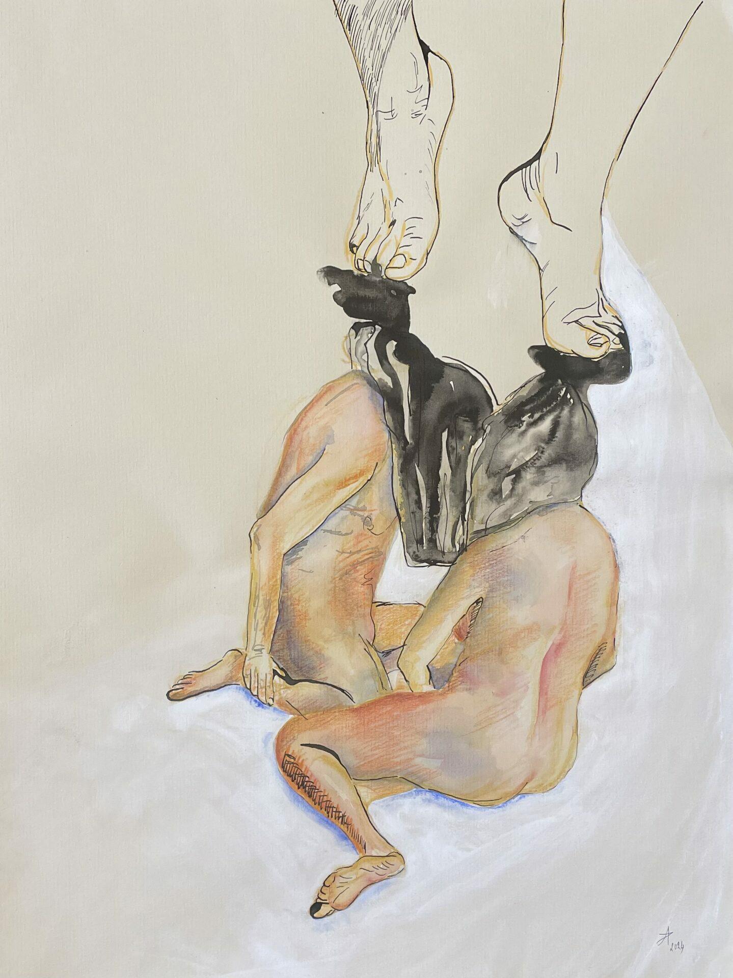 India ink and watercolor on paper