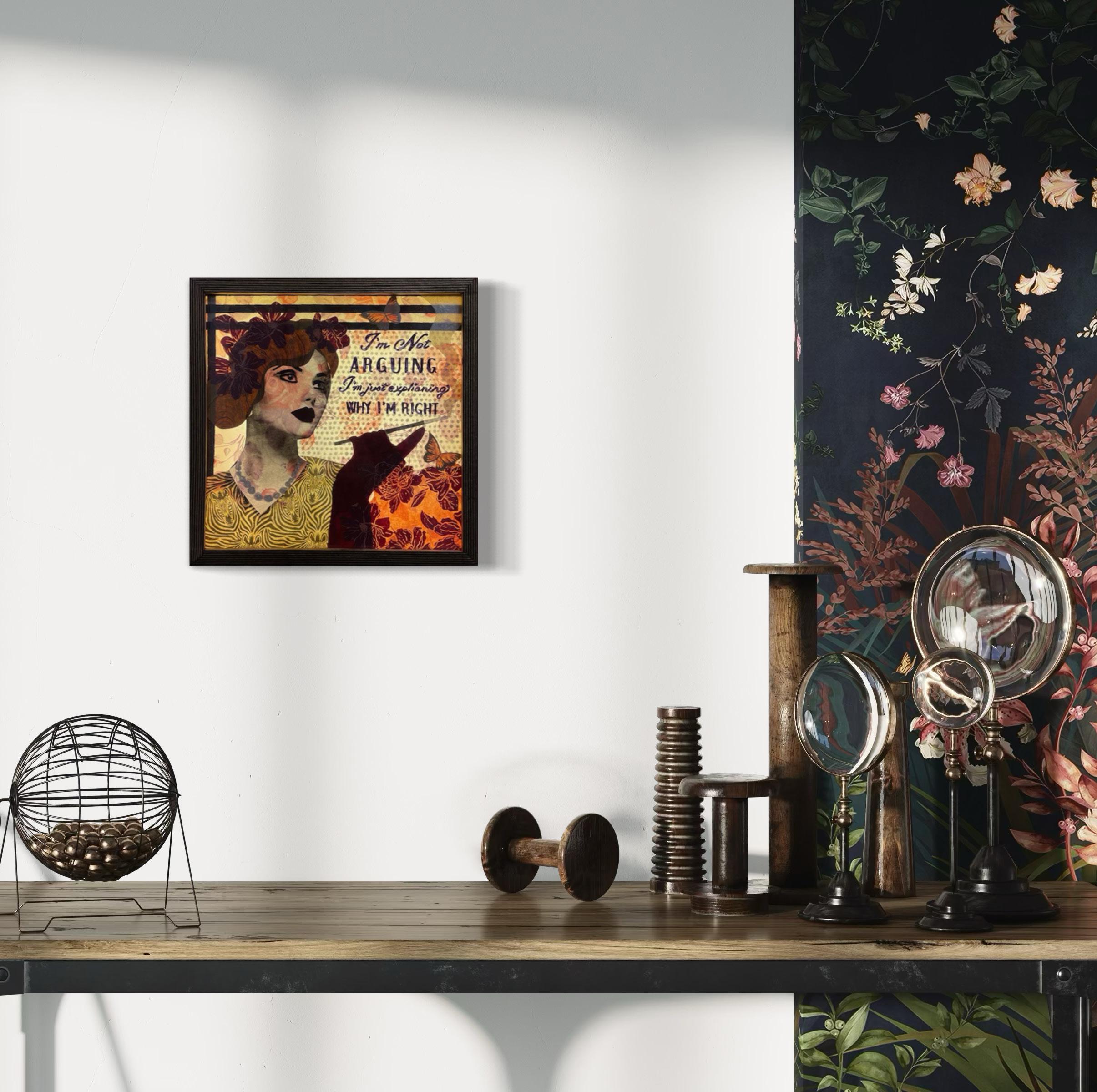LED light box: mixed media on paper in decorated wood frame
